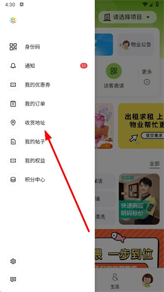 2、在側(cè)邊菜單中,找到收貨地址選項(xiàng)并點(diǎn)擊,進(jìn)入我的收貨地址管理頁(yè)面。