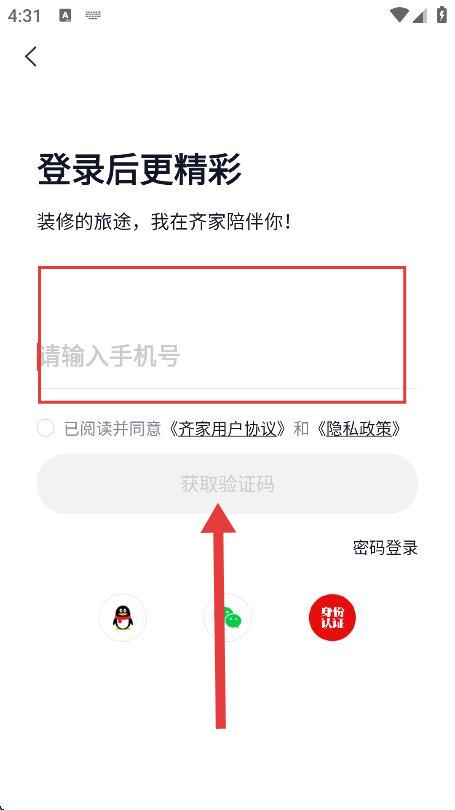 3、輸入要登錄的手機(jī)號(hào)并點(diǎn)擊獲取驗(yàn)證碼按鈕。