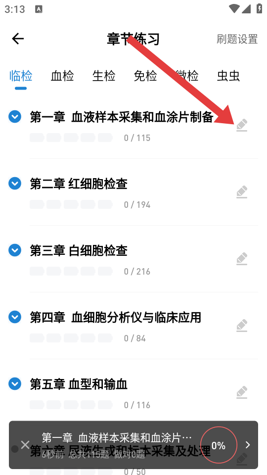 2、在章節(jié)練習列表中,選擇目標章節(jié),進入章節(jié)練習的界面。