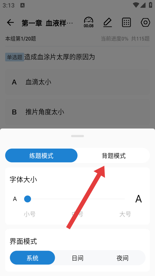 4、在設置的選項中,需要點擊背題模式,完成背題模式設置。