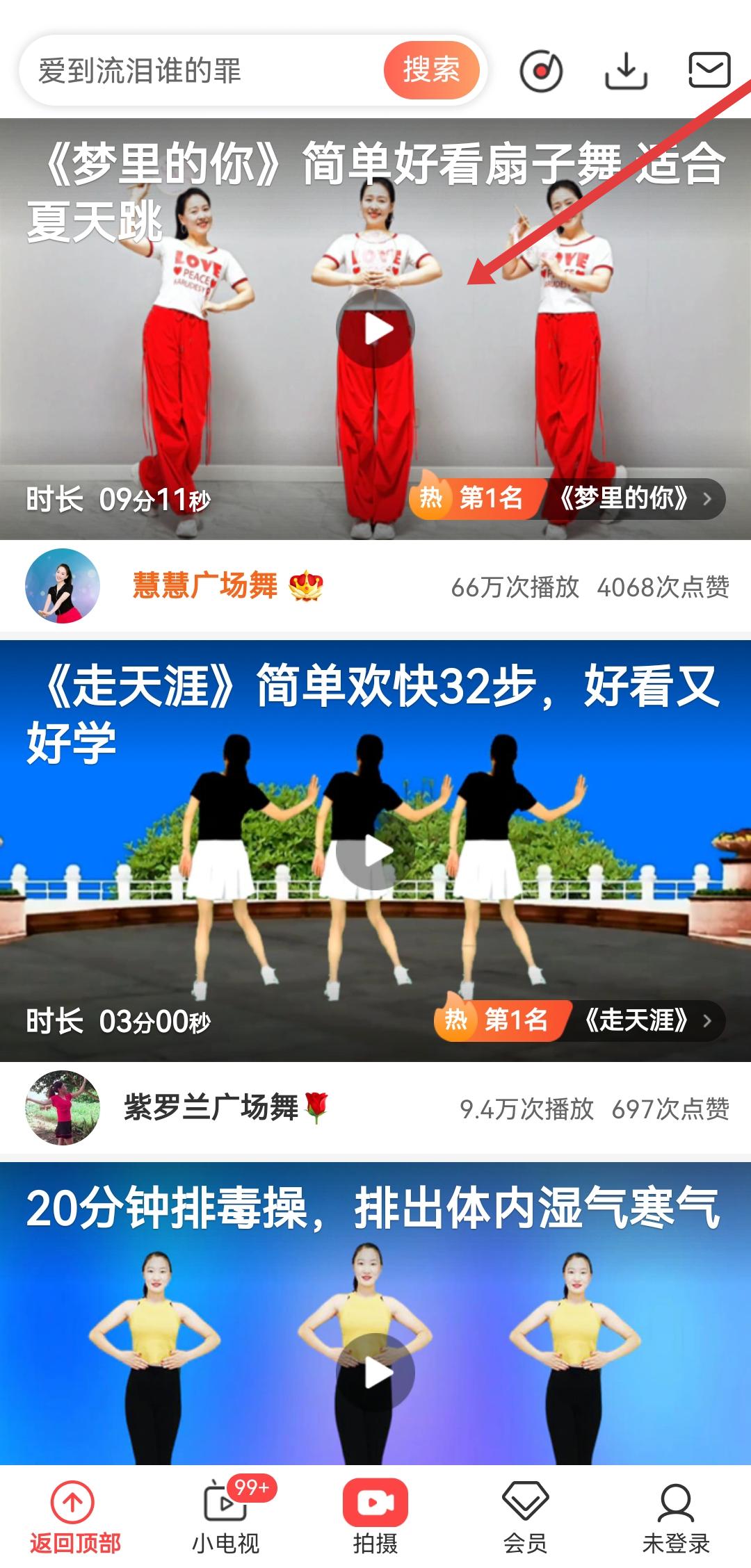 1、打開糖豆APP,選擇想要下載的廣場舞視頻如夢里的你,點擊進入視頻播放界面。