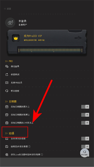 1、打開ProCCD復(fù)古CCD相機(jī)應(yīng)用,點(diǎn)擊左上角設(shè)置圖標(biāo),進(jìn)入設(shè)置頁面。