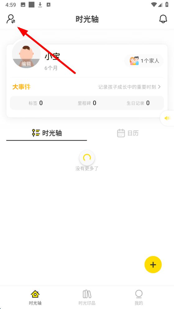 1、打開時光小屋app進(jìn)入時光軸界面,點擊左上角人像圖標(biāo),可展開相關(guān)選項。