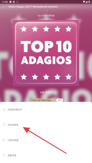 4、在展開的菜單欄中,選擇并點擊添加到歌單的按鈕。