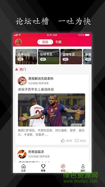 這是一款關于足球的app,里面都是一些足球賽事相關的內(nèi)容。頗有意思的是里面有各種球隊的球迷,他們在里面為了自己支持的球隊大量的討論,這個軟件也許真的很對這些球迷的胃口,對足球有興趣的朋友可以來這個軟件和他們一起討論,也歡迎來綠色資源網(wǎng)下載體驗這款游戲。