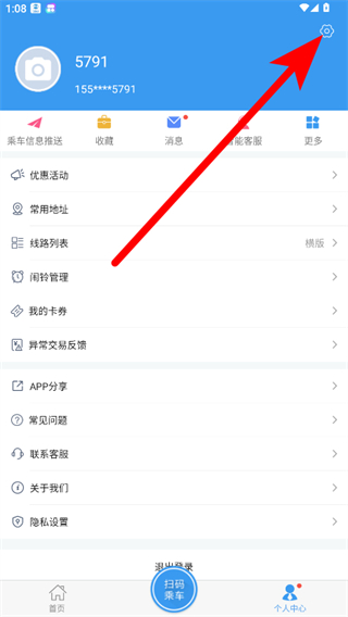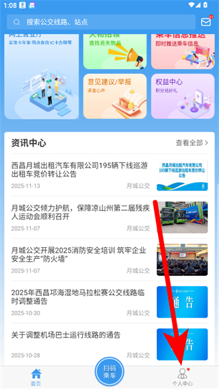 1、在月城公交首頁,點擊右下角個人中心選項,進入個人中心頁面。