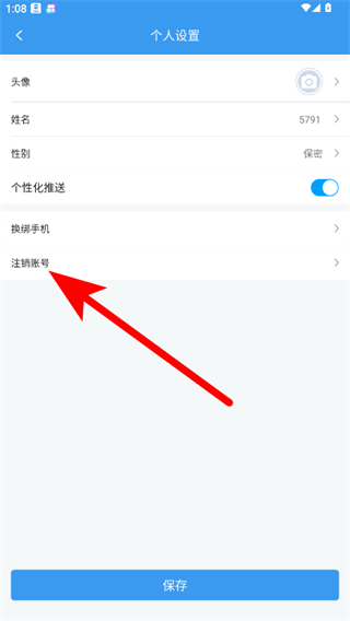 3、在個人設置頁面,點擊注銷賬號選項,進入注銷賬號頁面。