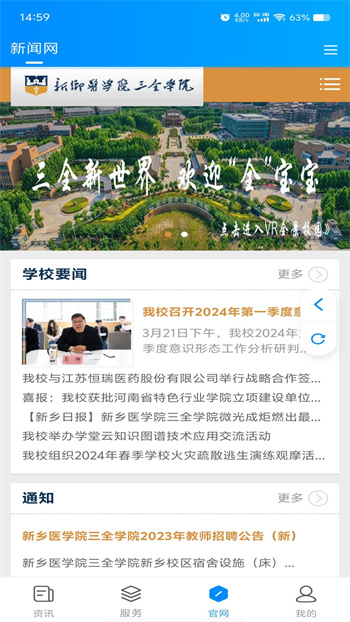 智慧三全是新鄉(xiāng)醫(yī)學(xué)院三全學(xué)院為全校師生打造的移動(dòng)智慧校園平臺(tái)。它通過(guò)先進(jìn)技術(shù)和多平臺(tái)有效融合的模式,對(duì)師生所需要的服務(wù)進(jìn)行持續(xù)建設(shè)和完善,覆蓋管理、工作、學(xué)習(xí)、生活等多個(gè)場(chǎng)景,為領(lǐng)導(dǎo)、師生營(yíng)造一個(gè)科學(xué)決策、管理透明、工作高效、學(xué)術(shù)氛圍濃厚、生活服務(wù)便利的一體化智慧校園。