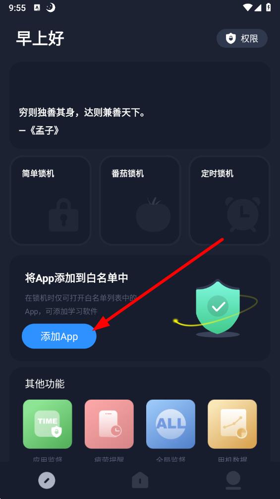 2、在鎖機設(shè)置界面里,找到將App添加到白名單中區(qū)域,點擊添加App按鈕。