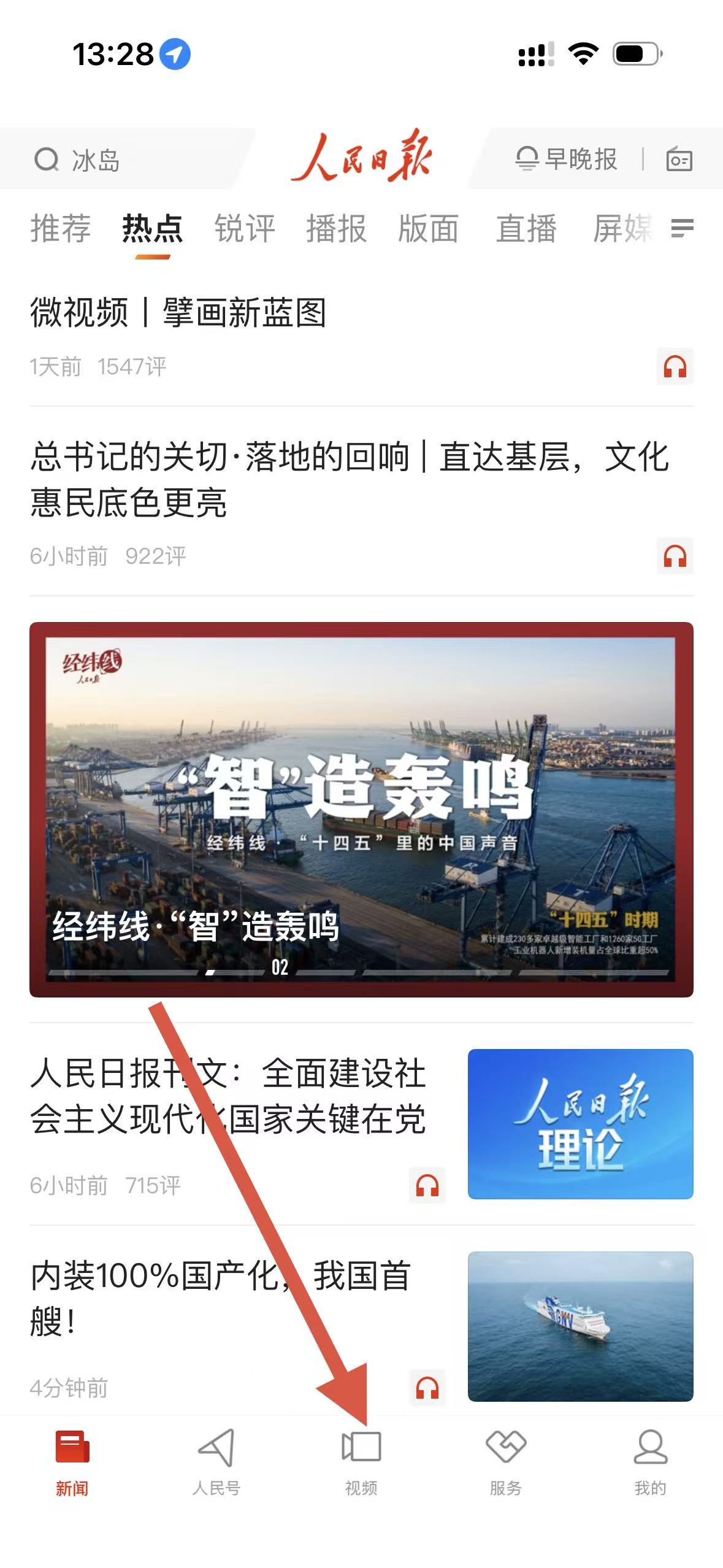 1、在人民日報app首頁,點擊視頻選項,進入視頻頁面。