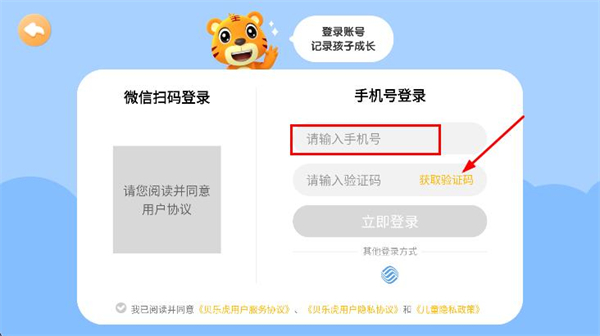 2、在登錄頁面,輸入手機(jī)號,點擊獲取驗證碼。
