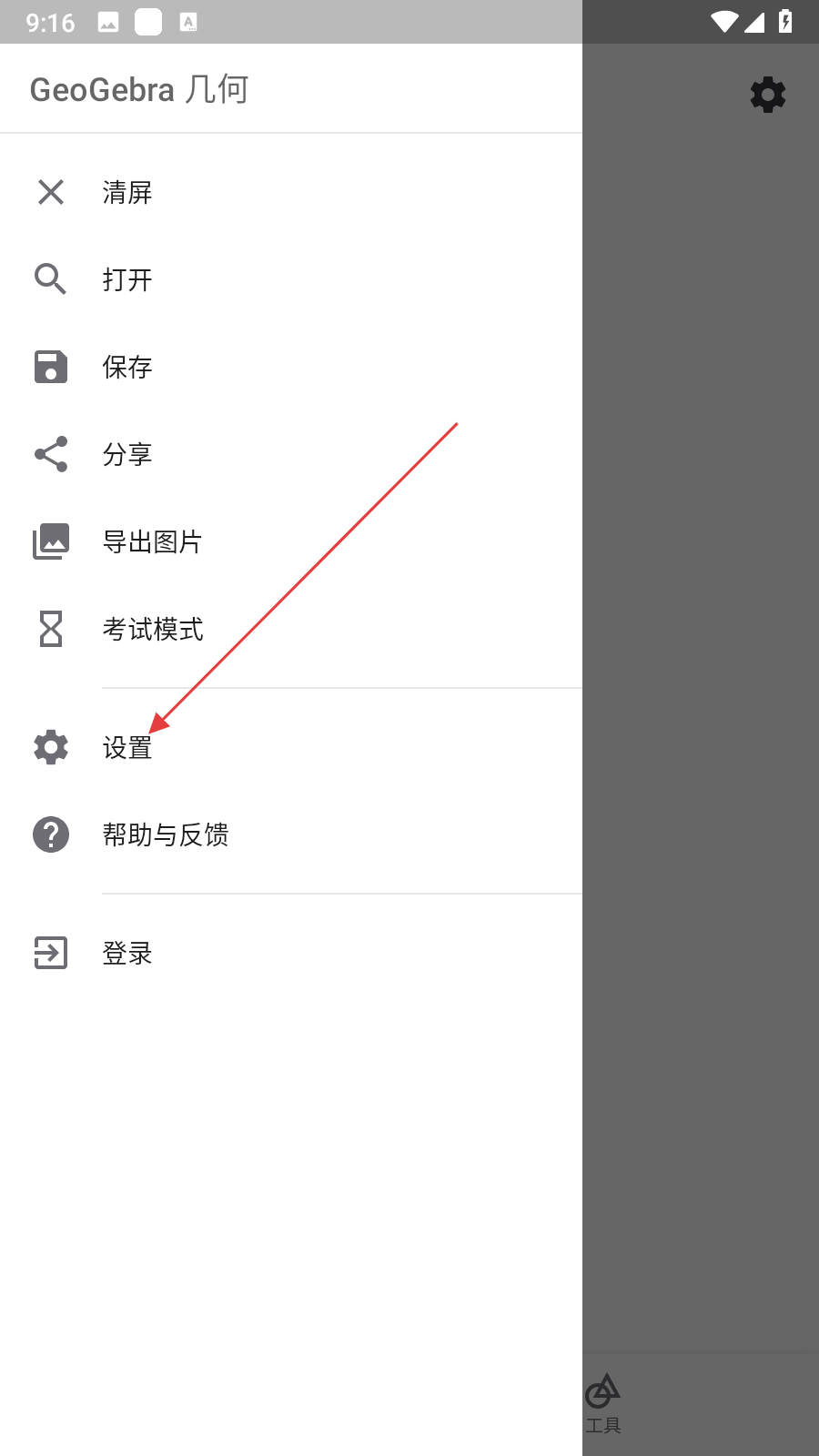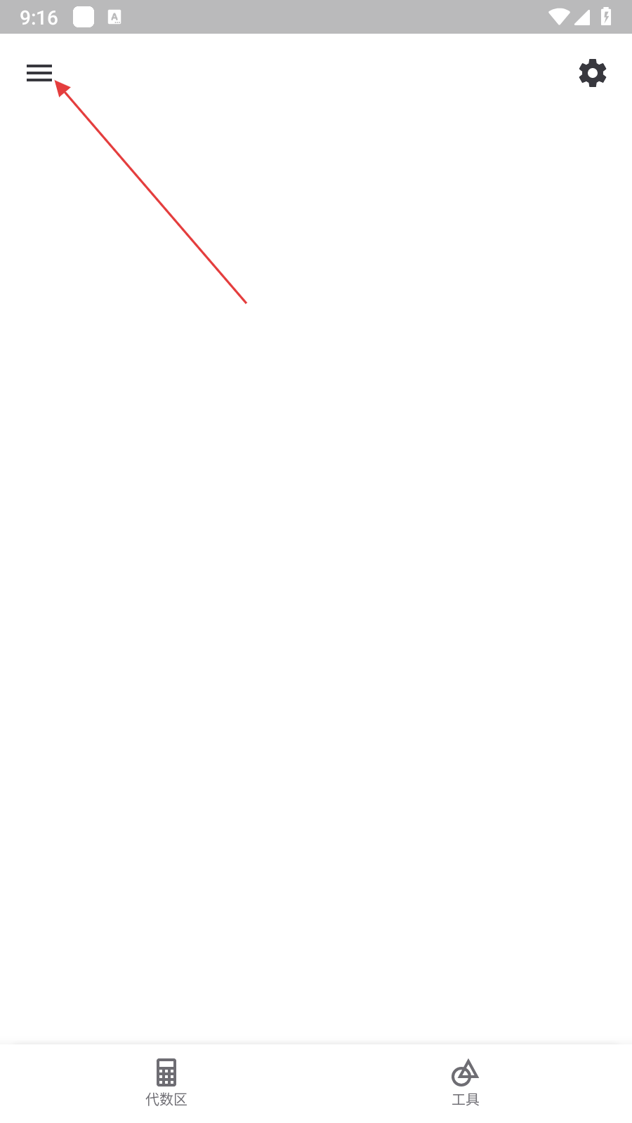 1、打開幾何計(jì)算器APP,點(diǎn)擊左上角三條橫線樣式的菜單按鈕,展開側(cè)邊欄菜單。