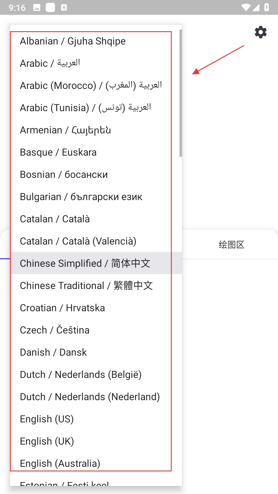 4、在語言選擇列表中,滑動(dòng)查找并點(diǎn)擊目標(biāo)語言,即可完成幾何計(jì)算器語言設(shè)置的更改。