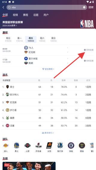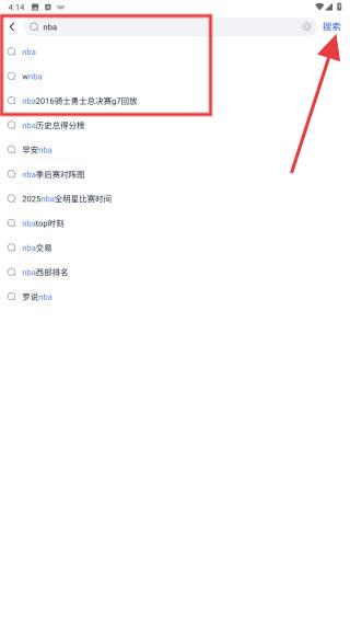 2、根據(jù)需求輸入精準(zhǔn)的關(guān)鍵詞,例如:nba,會(huì)跳出相關(guān)的內(nèi)容,也可直接點(diǎn)擊搜索的按鈕。