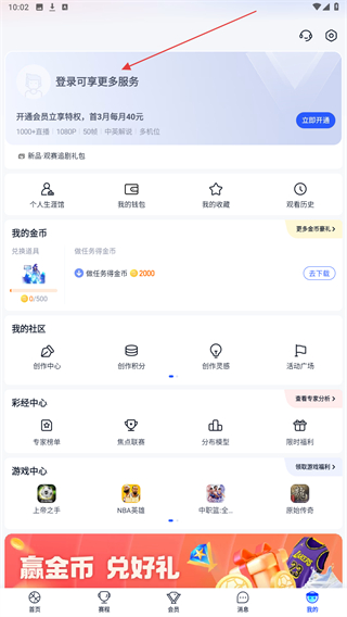 2、在個(gè)人中心界面,點(diǎn)擊登錄可享更多服務(wù)區(qū)域。