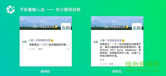 好不容易寫了一段文字,然后想要發(fā)到朋友圈給大家分享一下,結(jié)果復(fù)制粘貼之后發(fā)布,卻被折疊成了一行,無法顯示全文,只有點開才能查看,是不是很苦惱呢?不要擔(dān)心,解決這一大問題的神器已經(jīng)出現(xiàn)啦!綠色資源網(wǎng)小編給大家推薦一下這個神奇的「不折疊輸入法」APP,他可以完美解決朋友圈折疊問題!