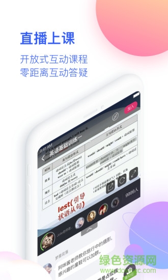 cctalk校園版app是針對學校設(shè)計的一款教學管理軟件,提供強大的功能模塊,開放式直播上課,零距離課堂互動輕松答疑解惑,離線緩存隨時隨地看課程無需流量,歡迎來綠色資源網(wǎng)下載!