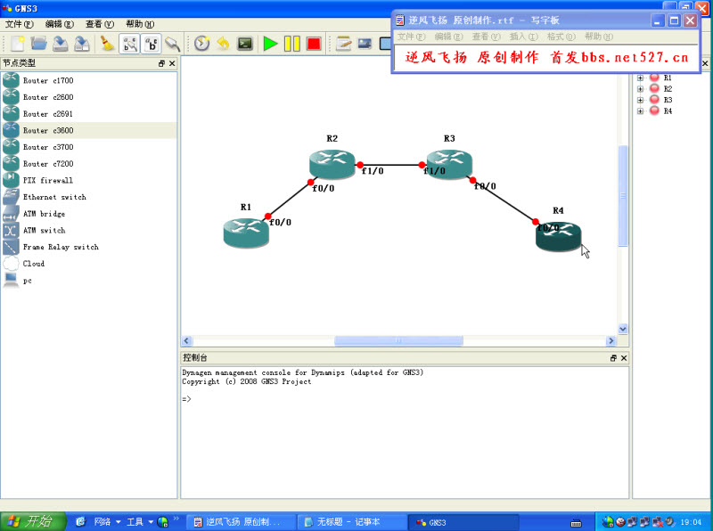 就是我們的 dynampis 模擬器了。有一點請注意,GNS3只支持英文目錄,所以有中文出現(xiàn)