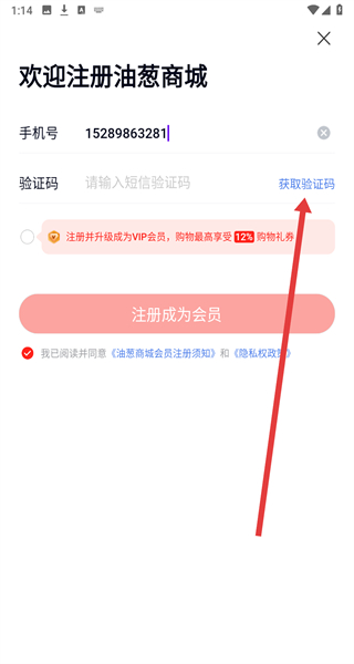 4、在注冊(cè)頁(yè)面輸入手機(jī)號(hào),點(diǎn)擊“獲取驗(yàn)證碼”,輸入驗(yàn)證碼后點(diǎn)擊“注冊(cè)成為會(huì)員”,完成賬號(hào)注冊(cè)流程。