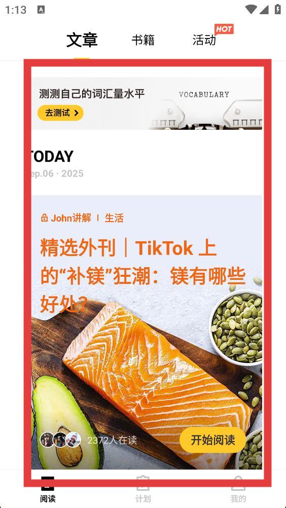 1、選擇需要打卡的文章,進(jìn)入文章頁,點(diǎn)擊開始閱讀。