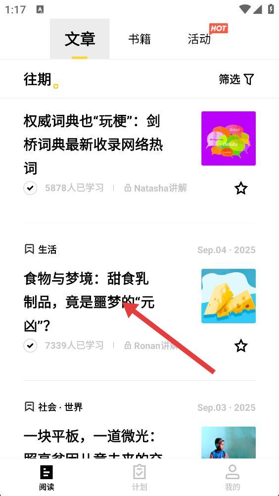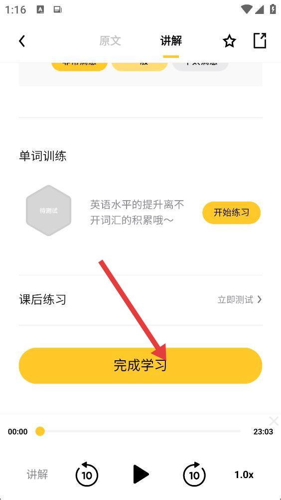 2、進(jìn)入文章學(xué)習(xí)界面,完成閱讀、單詞訓(xùn)練及課后練習(xí)等任務(wù)。
