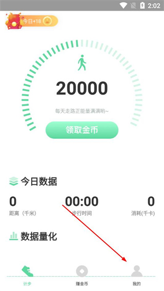 1、在步數(shù)賺的計(jì)步頁面,點(diǎn)擊底部的我的選項(xiàng)。