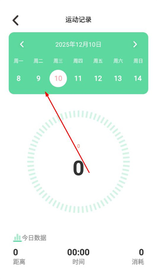 3、進(jìn)入運(yùn)動(dòng)記錄頁面,默認(rèn)顯示當(dāng)前日期的步數(shù)記錄。