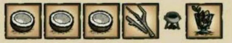 材料廉價(jià)的回血食物,3個(gè)水果加一個(gè)樹(shù)枝就可以做出來(lái)不一定用椰子,也可以用香蕉,石榴,西瓜,但是偏偏漿果就是不行,沒(méi)食物了可以吃這個(gè)湊合著過(guò),海難食物大都是偏回血的。
