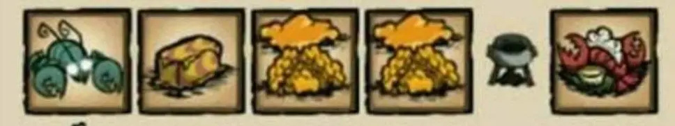 沒(méi)錯(cuò),饑荒回血回san的超級(jí)食品,一只活龍蝦(死龍蝦放不進(jìn)鍋里)加一塊黃油,加填充物,不一定像圖里一樣要蜂蜜,只要不是肉類(lèi)和冰就可以搞出來(lái)了,黃油比較難搞,所以不推薦。