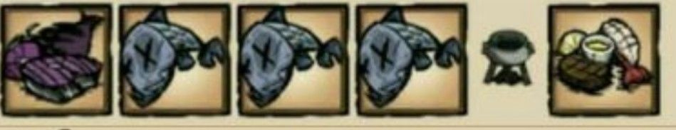 一個(gè)肉加3條魚(yú)或者兩塊肉加兩條魚(yú)就可以制作海難最容易做的回血回san值神級(jí)食物了,肉可以是怪物肉,但是只能用肉類(lèi),中間不能加素菜,蛋也不行。