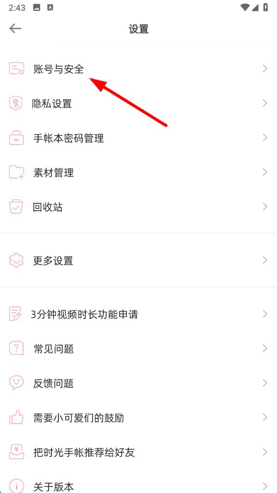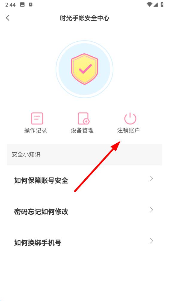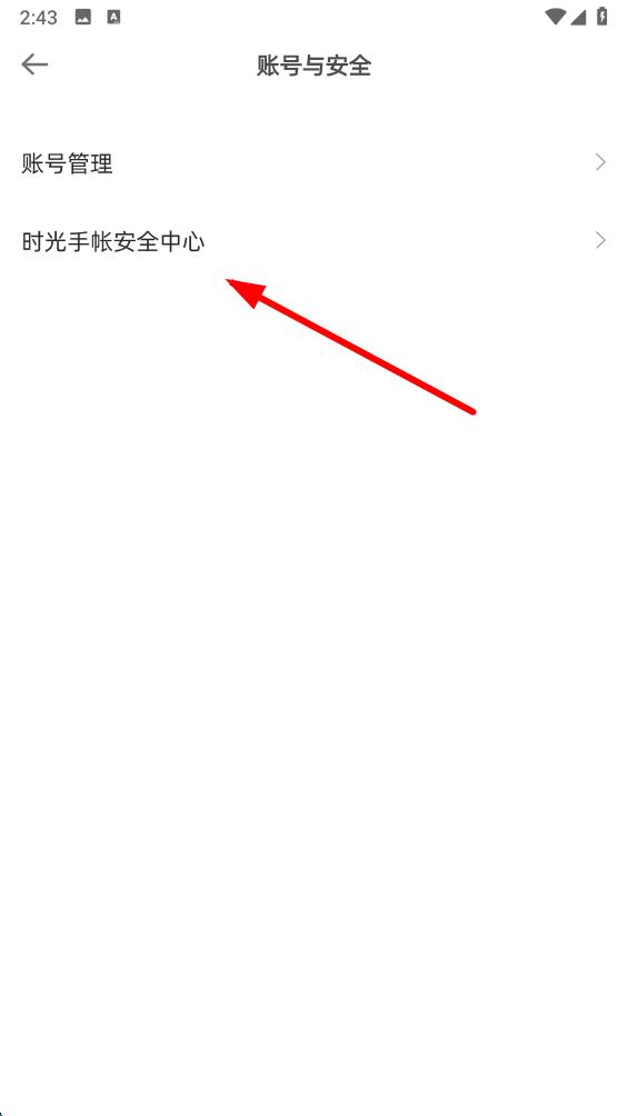 3、在賬號(hào)與安全頁面里,點(diǎn)擊時(shí)光手帳安全中心,進(jìn)入到安全中心。