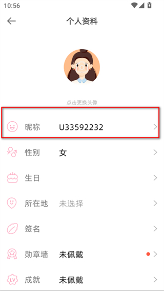 4、在個(gè)人資料頁面點(diǎn)擊昵稱選項(xiàng),輸入新的名字昵稱后即可完成修改。