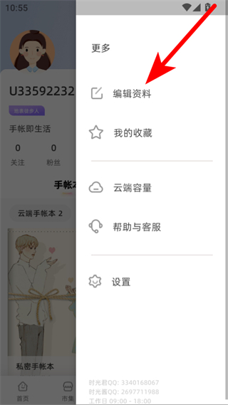3、在更多選項(xiàng)菜單中點(diǎn)擊編輯資料選項(xiàng),進(jìn)入個(gè)人資料頁面。