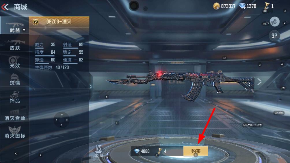 4、找到想要購買的武器后,點(diǎn)擊武器進(jìn)入詳情頁,再點(diǎn)擊購買按鈕,按照提示完成購買操作,需要確保鉆石或其他貨幣充足。