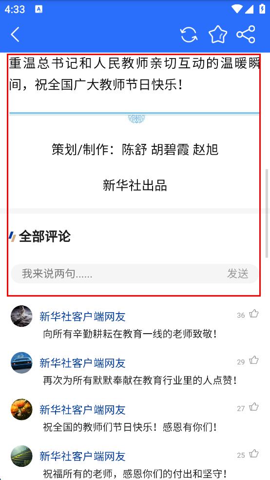 4、在內(nèi)容詳情頁面,可查看關(guān)于主題的詳細內(nèi)容,還能在評論區(qū)看到其他網(wǎng)友的評論,也可以在“我來說兩句……”輸入框中輸入自己的評論并發(fā)送。