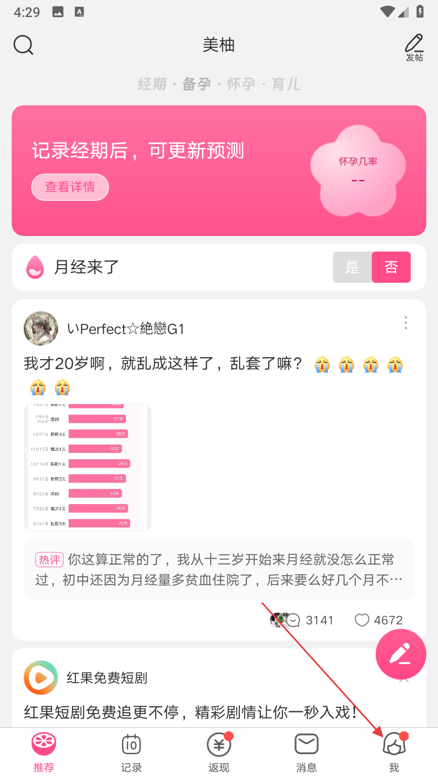1、打開美柚APP,點擊底部導航欄我,進入個人頁面。
