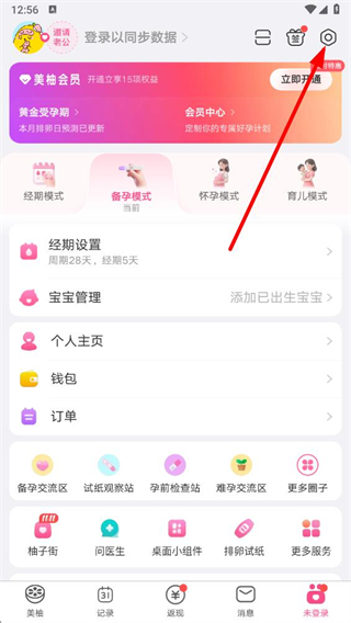 1、打開美柚APP,在個人中心頁面點擊右上角設置圖標。