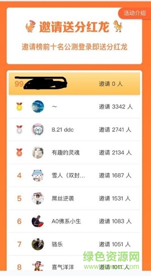 3、活動(dòng)規(guī)則:截止11月10日公測(cè)當(dāng)天邀請(qǐng)排行榜前十名的用戶將獲贈(zèng)一只分紅龍