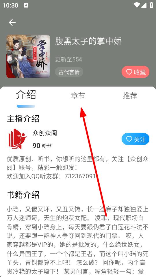 3、在書籍詳情頁中,點擊章節(jié)選項卡,進入章節(jié)列表界面。