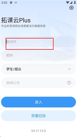2、進入課堂進入頁面后,點擊輸入框,輸入房間號。