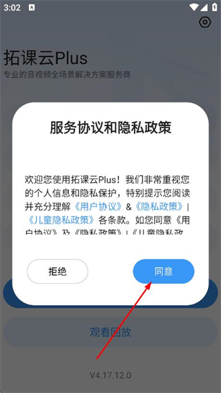 1、打開拓課云Plus app,在彈出的提示框中點擊同意。