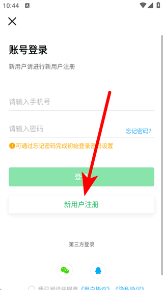 3、在賬號(hào)登錄頁(yè)面,點(diǎn)擊新用戶注冊(cè)選項(xiàng),進(jìn)入新用戶注冊(cè)界面。