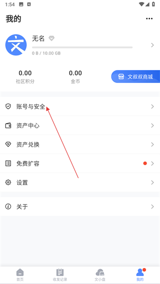 1、打開文叔叔APP,進入個人頁面,在頁面中找到賬號與安全選項并點擊。