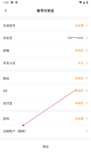 2、在賬號與安全頁面,點擊注銷賬戶選項,進入注銷賬戶風險提示頁面。