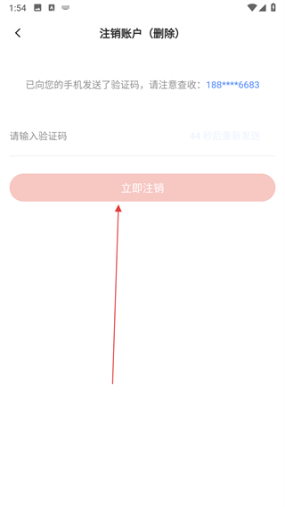 5、獲取驗證碼后輸入,再點擊立即注銷按鈕,完成賬號注銷。
