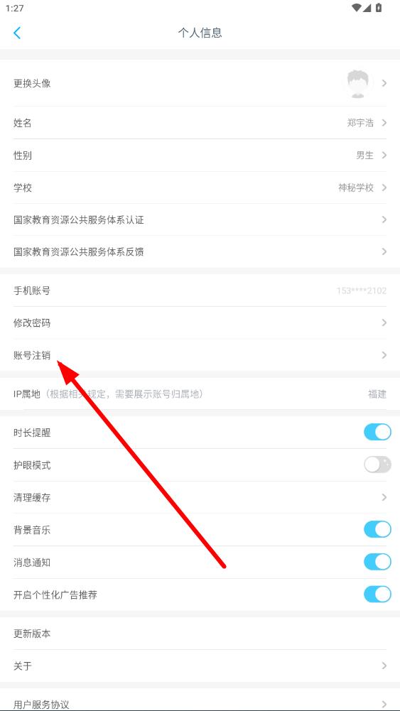 3、在設(shè)置界面里,找到并點擊賬號注銷選項,進(jìn)入注銷賬號說明頁面。
