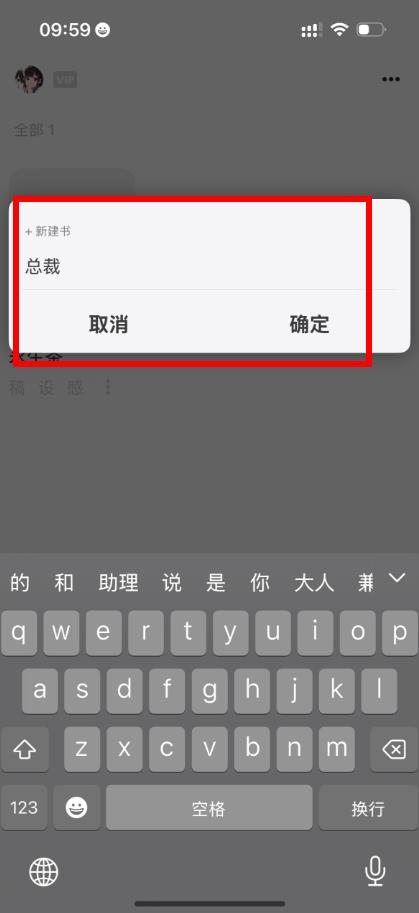 2、在新建書窗口中輸入作品名稱,比如總裁,輸入完成后點擊確定按鈕。