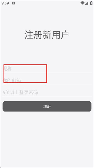 2、在注冊新用戶頁面,依次填寫昵稱、郵箱。