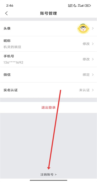2、在進(jìn)入到賬號(hào)管理頁面后,若想注銷賬號(hào),可以點(diǎn)擊底部注銷賬號(hào)選項(xiàng)進(jìn)行操作。