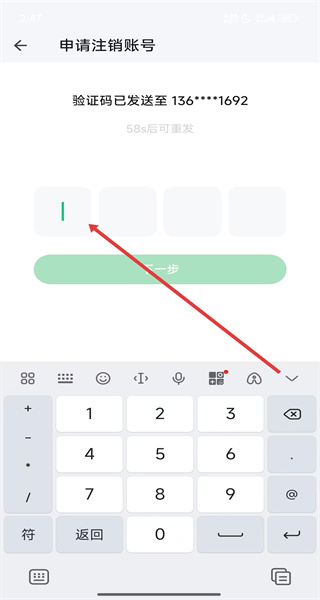 4、在進(jìn)入到驗(yàn)證頁面中,可以點(diǎn)擊方框填寫獲取到的驗(yàn)證碼后,即可完成注銷賬號(hào)。